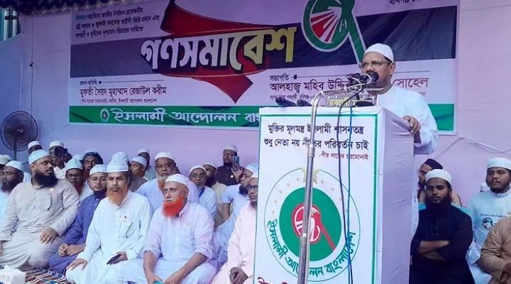 গণসমাবেশে সভাপতিত্ব করেন ইসলামী আন্দোলন বাংলাদেশের জেলা সভাপতি মহিব উদ্দিন আহমেদ সোহেল। সাধারণ সম্পাদক সামছুল হুদার পরিচালনায় বক্তৃতা করেন মুফতি তাজুল ইসলাম, মাহমুদুল হাসান, মঈন উদ্দিন খান তানভির, আব্দুল মোছাব্বির রুনু, সোলায়মান গাজী প্রমুখ।
