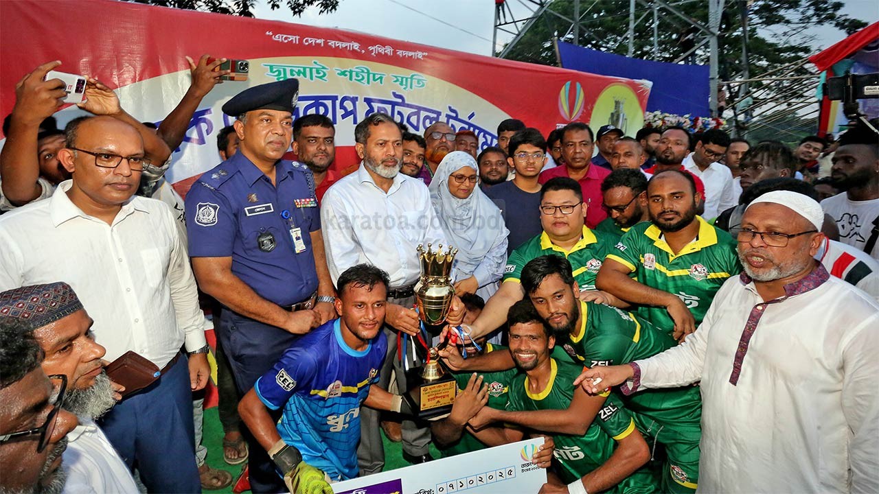 জেলা প্রশাসন ও জেলা ক্রীড়া সংস্থা আয়োজিত ফুটবল টুর্নামেন্টের তীব্র প্রতিদ্বন্দ্বিতাপূর্ণ ফাইনাল ম্যাচের নির্ধারিত সময়ে কোন দলই গোল পায়নি। আক্রমণ-পাল্টা আক্রমণের মধ্যে দিয়ে খেলার নির্ধারিত সময় শেষ হলে টাইব্রেকারে খেলার ফলাফল নির্ধারিত হয়। উভয়দলে একাধিক বিদেশি ফুটবলার অংশ নেন। খেলা শেষে চ্যাম্পিয়ন এবং রানার্সআপ দলের হাতে ট্রফি এবং প্রাইজমানি তুলে দেন রাজশাহী বিভাগীয় কমিশনার খোন্দকার আজিম আহমেদ এনডিসি।