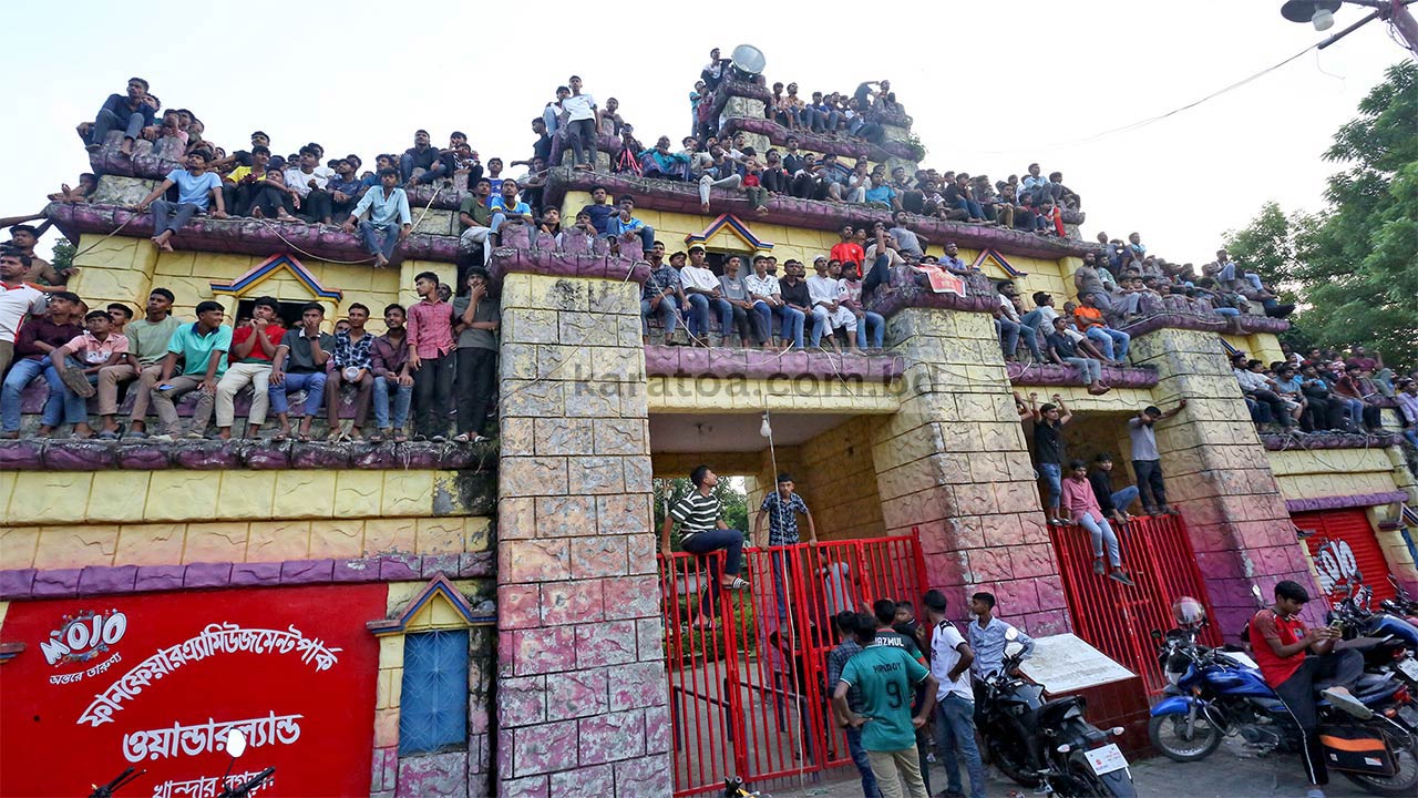খেলা শুরুর আগেই মাঠের চারপাশ এবং আশেপাশের বিল্ডিং এবং উঁচু জায়গায় হাজার হাজার দর্শক জমায়েত হয়। এমনকি অনেক দর্শক মাঠের গাছে উঠে খেলা উপভোগ করেন। এক পর্যায়ে দর্শকের চাপে একটি ডাল ভেঙে পড়ে কয়েকজন দর্শক আহত হন। তাদেরকে প্রাথমিক চিকিৎসা দেওয়া হয়েছে।