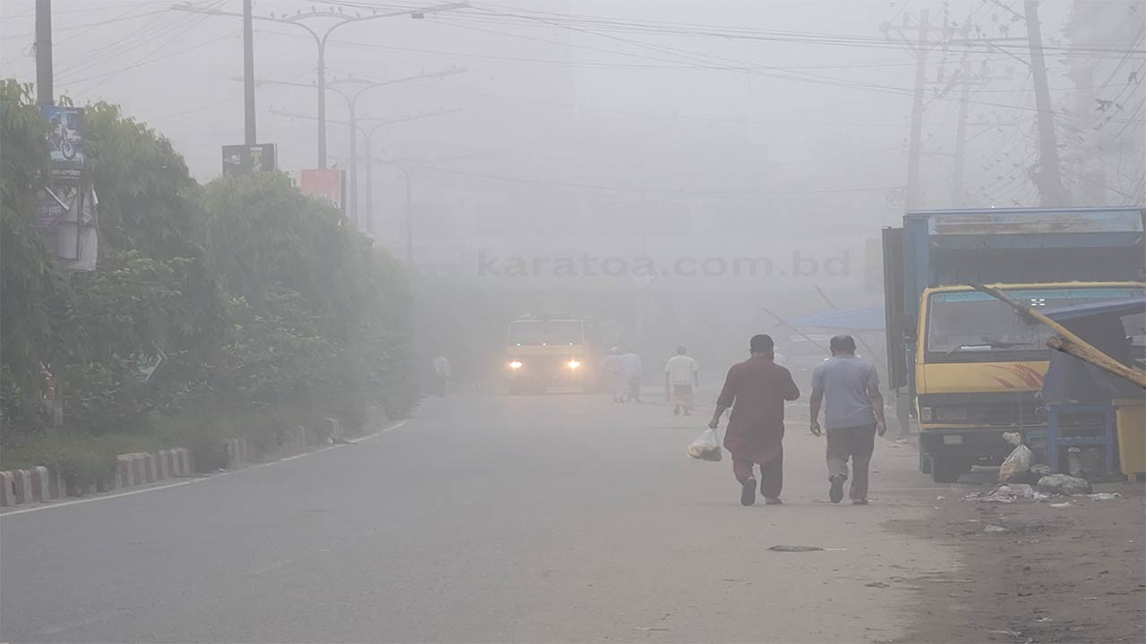 দিনভর রোদ ও মেঘের খেলার মধ্যেই মৌসুমের প্রথম ঘন কুয়াশায় ভিজলো বগুড়ার মাটি