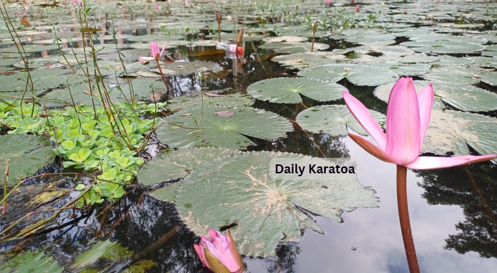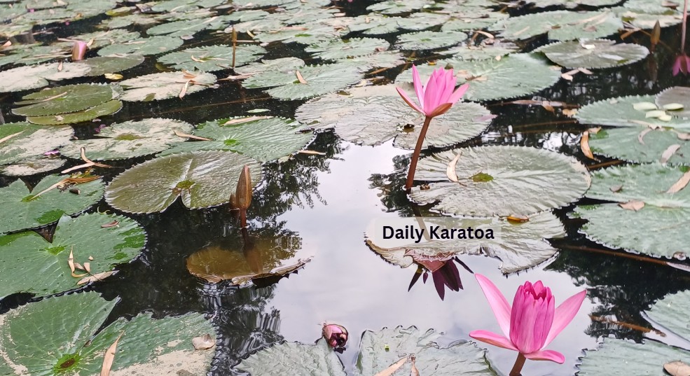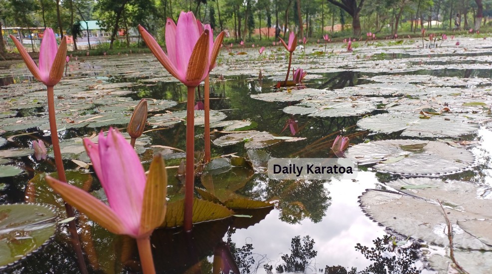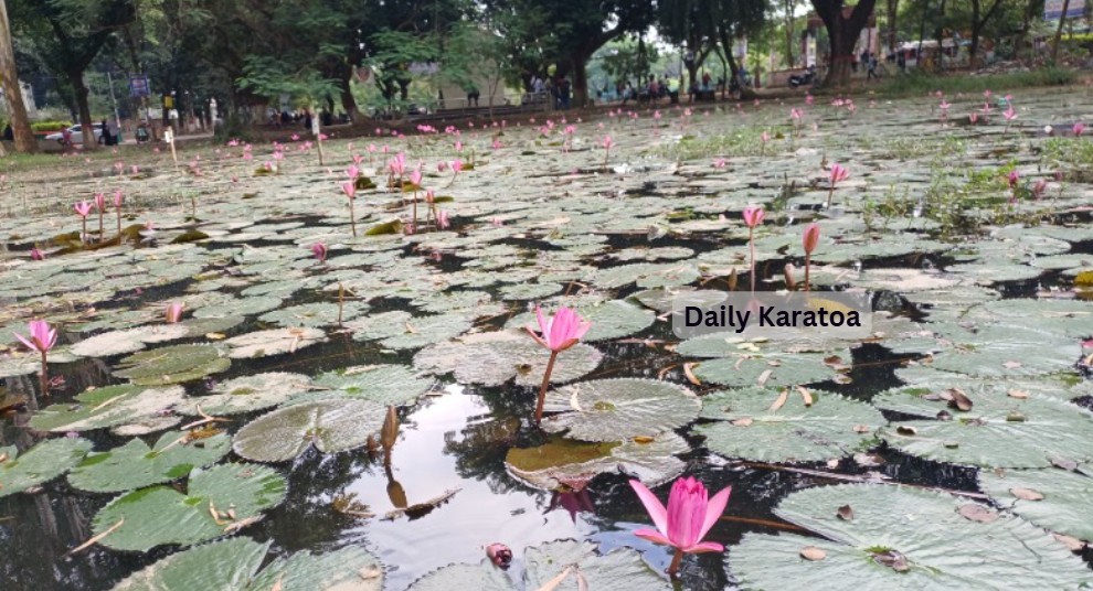 বগুড়া সরকারি আজিজুল হক কলেজ ক্যাম্পাসের পুকুরে মনোরম দৃশ্য তৈরি করেছে শাপলা ফুল